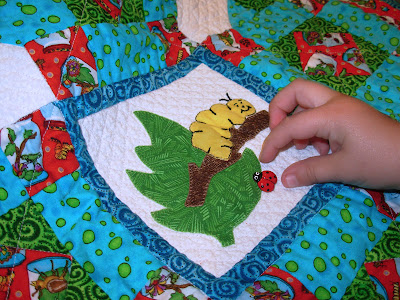 That is absolutely gorgeous! I love the caterpillar and ladybug appliqué. Lucky Jai! Great job Joy!!